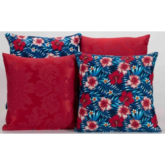 Kit com 4 Capas para Almofadas Decorativas Estampa Vermelho com Azul