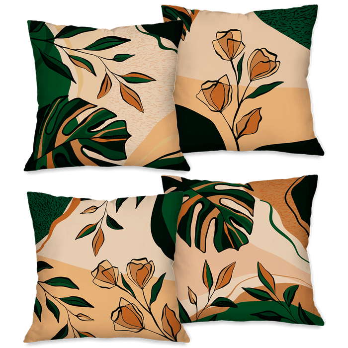Kit com 4 Capas para Almofadas Decorativas Folhagem Verde Bege