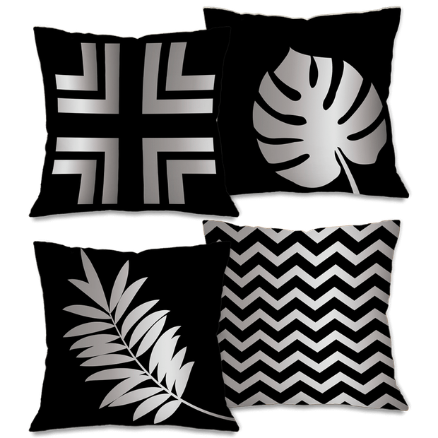 Kit com 4 Capas para Almofadas Decorativas Folhas Preto