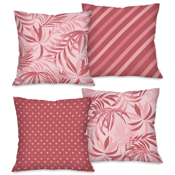 Kit com 4 Capas para Almofadas Decorativas Folhas Abstrato Rosa