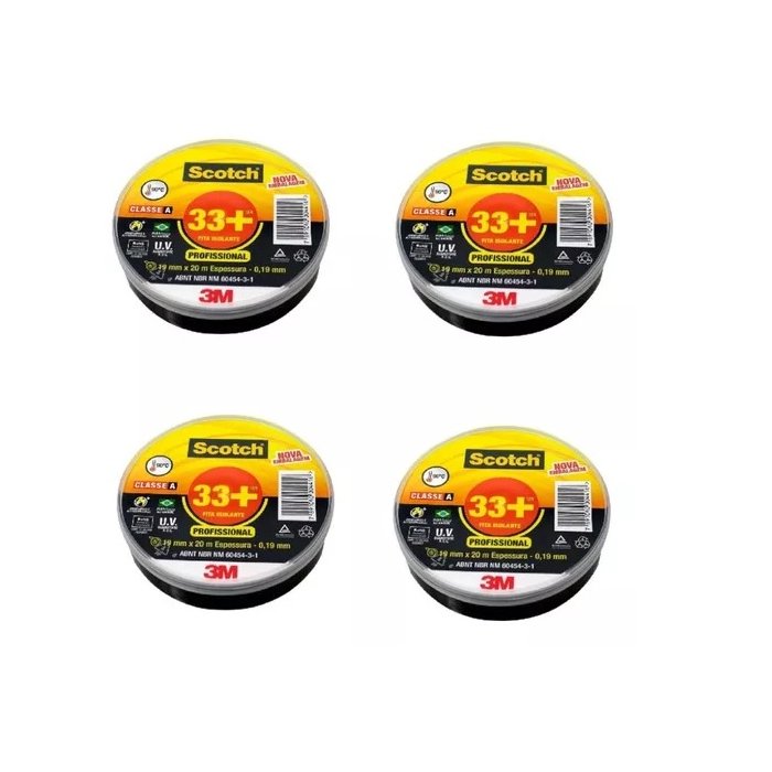 Kit com 4 Fita Isolante 3m Scotch 33+ 19mm X 20m