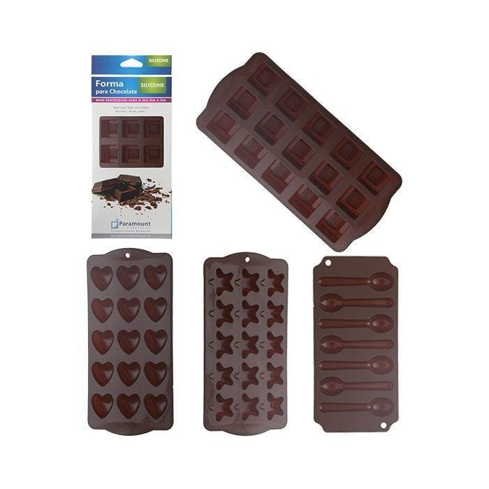 Confira esse Kit com 4 Modelos Diferentes de Forma de Silicone para Chocolate, elas são ideais para te auxiliar na produção de bombons e chocolates diversos.