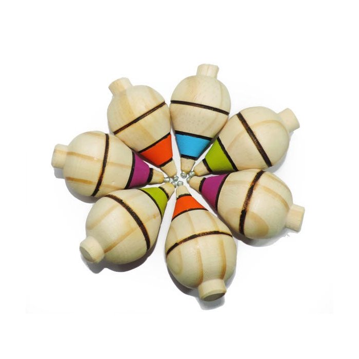 Kit com 4 Piões em Madeira colorido brinquedo educativo clássic