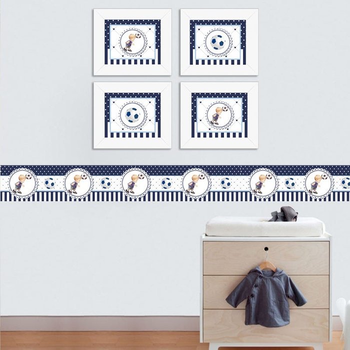 Kit Com 4 Quadros Quarto De Bebe Menino Futebol