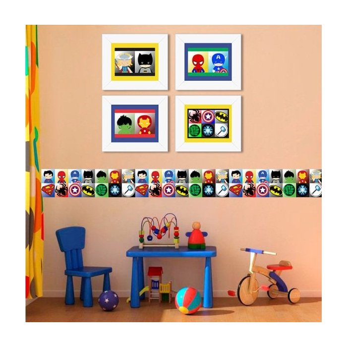 Kit Com 4 Quadros Quarto De Bebe Vingadores Baby