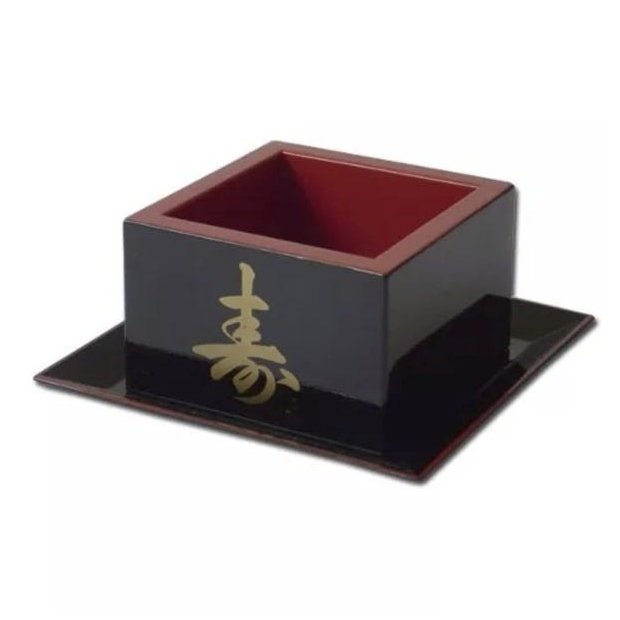 O massu é um tipo de copo quadrado tradicionalmente utilizado pelos japoneses para servir especificamente o sake frio ou gelado. feita em acabamento de excelente qualidade, polido e envernizado , com a cor interna vermelha e externa preta decorada com ideograma japonês dourado. Acabamento de excelente qualidade e brilho.
