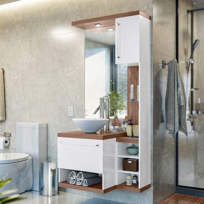 Ter o banheiro dos sonhos fica fácil com a mobília correta. Aliando elegância e praticidade, o Conjunto para Banheiro Arezzo, composto por um gabinete suspenso e espelheira, não necessitam de muito espaço para ser instalado, é fácil de limpar e dá um super up na decoração de qualquer banheiro. O espelho possui ótimo tamanho e o armário para guardar sabonetes, shampoos e tudo o que mais se desejar. Inspirados nas novas tendências mundiais, agregando também ótima resistência, durabilidade e qualidade com muito requinte e beleza.