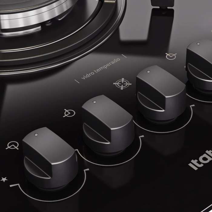 Kit com 5 Manípulos Cooktop Vitrum Preto Itatiaia