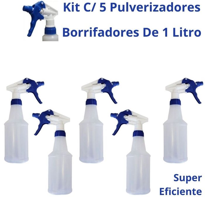 Kit Com 5 Pulverizadores Borrifadores Spray De 1 Litro Quer praticidade no seu dia-a-dia? Com o Pulverizador Borrifador da Pitaiex você agiliza suas tarefas, seja na limpeza diária ou no cuidado com suas plantas. Pulverizador Spray Profissional 1 Litro com gatilho manual e com regulagem de leque. Pensando em solucionar as necessidades de limpeza profissional, a Perfect desenvolveu o pulverizador profissional. O Pulverizador Spray, atua de forma eficaz e proporciona maior agilidade na rotina de limpeza. Disponíveis em embalagem de 1 litro. São resistentes à maioria dos produtos químicos. *Características Capacidade: 1 Litro Material: Plástico Marca: Perfect Pulverização Profissional Resistência à Maioria dos Produtos Químicos Cada um possui capacidade de 1 litro que dá mais autonomia nas suas atividades. Capacidade: 1 litro Tamanho: 33 cm altura x 9 cm de diâmetro; Tipo de operação: acionamento manual; Tipo de jato: spray. Conteúdo do Kit: 5 unidades