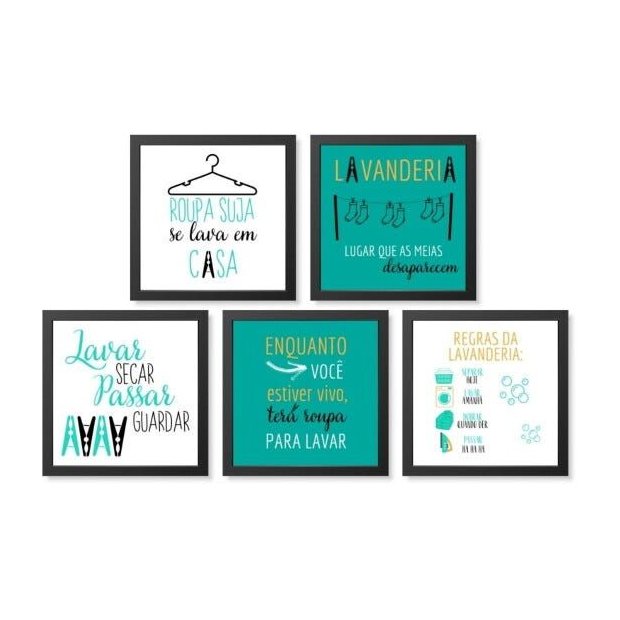 Kit com 5 Quadros Decorativos - Lavanderia preta
