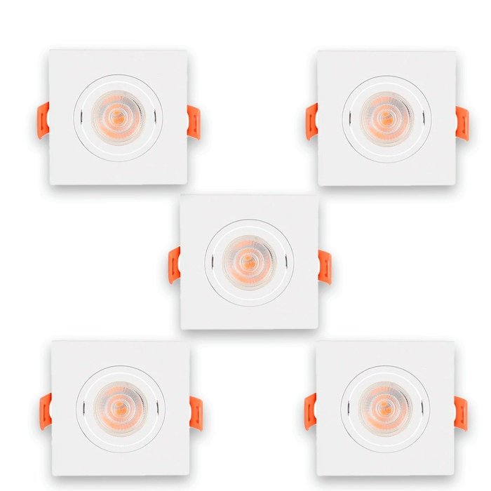 5 Spots de Embutir Quadrado Plano Branco Nordecor/MBLed REF 6292