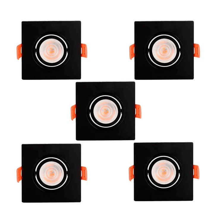 5 Spots de Embutir Quadrado Plano Preto Nordecor/MBLed REF 6293