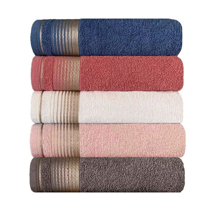 CONTEÚDO: 5 Toalhas Banhão nas cores: Branca, Cinza, Rosa Claro, Rosa Escuro e Azul Escuro.