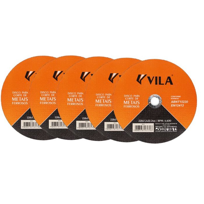 Kit Com 5un Disco Corte Ferro 9" 228X3,2X22,2 Vila