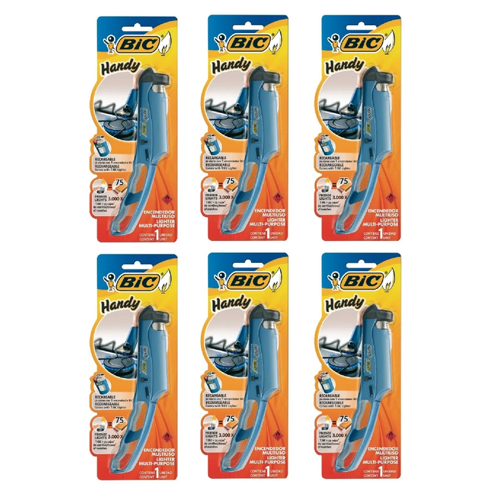 Kit com 6 Acendedor Isqueiro Fogão Forno Fogareiro Bic Handy Multiuso Recarregável