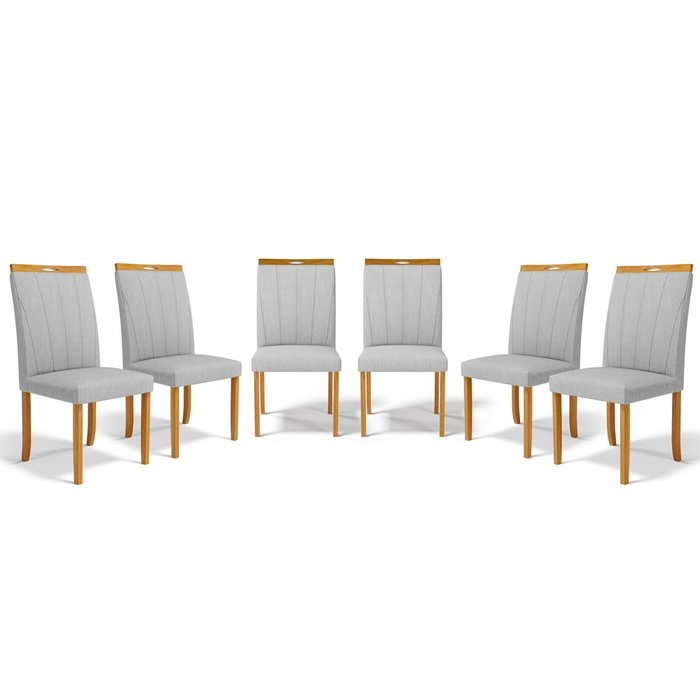 Kit Com 6 Cadeiras Aurora Madeira Maciça Estofadas Para Mesa De Jantar Linho Cinza 407 - Conjunto Kit Com 6 Cadeiras De Sala De Jantar Estofadas