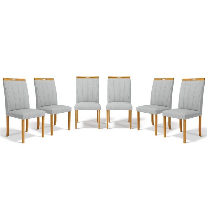 Kit com 6 Cadeiras Aurora Madeira Maciça Estofadas para Mesa de Jantar Linho Cinza 407