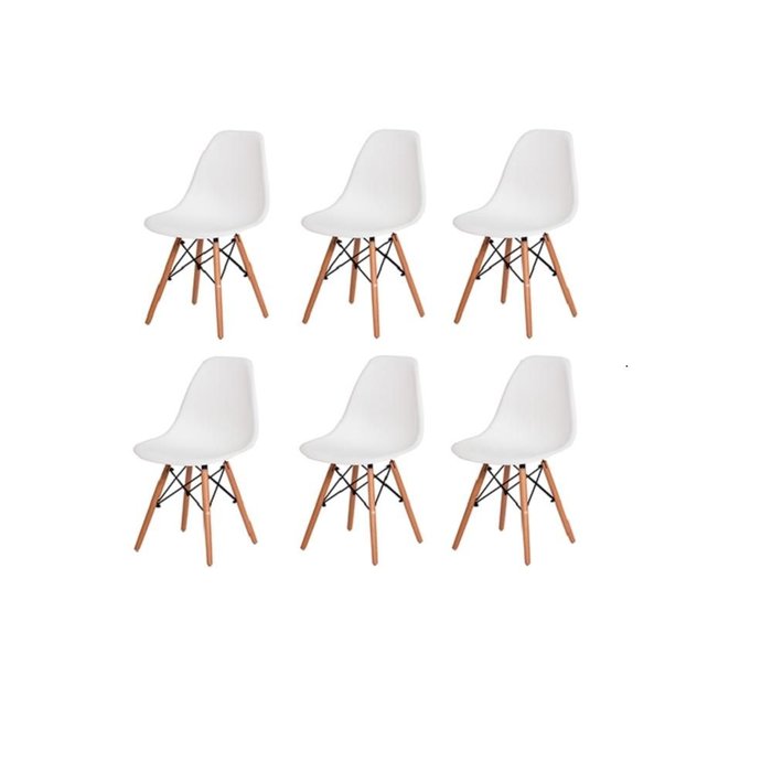 Kit com 6 Cadeiras Charles Eames Wood Dsw Branca - Base Madeira branco