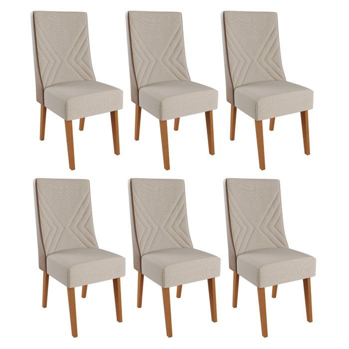 Kit com 6 Cadeiras em Madeira Maciça Romero Linho Bronze