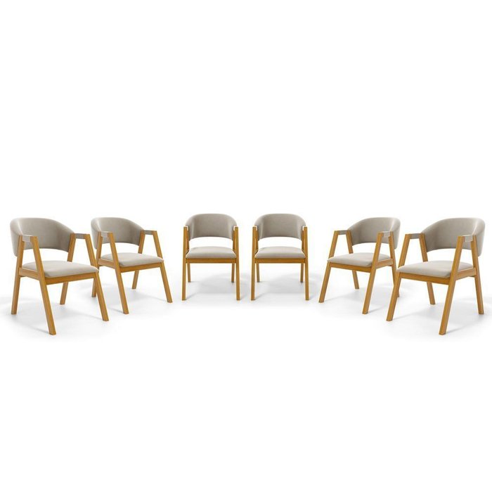 Kit Com 6 Cadeiras Leticia Madeira Maciça Estofada Para Mesa De jantar Veludo Bege 102 - Cadeiras Para Sala De Jantar Estofadas
