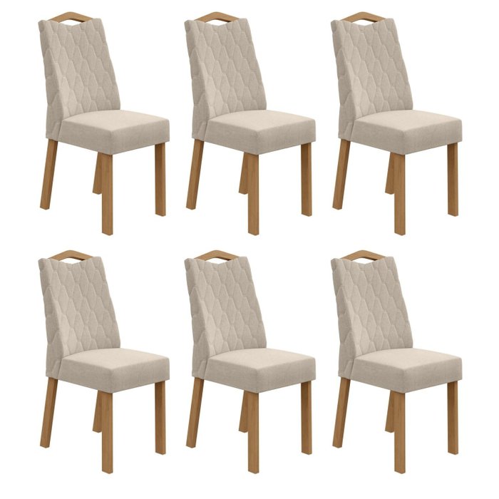 Kit com 6 Cadeiras para Sala de Jantar Vênus Amêndoa Clean/Linho Rinzai Bege