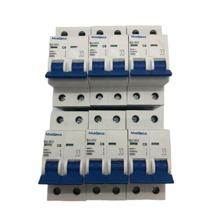KIT COM 6 Disjuntores Bipolar 6 Amperes DIN