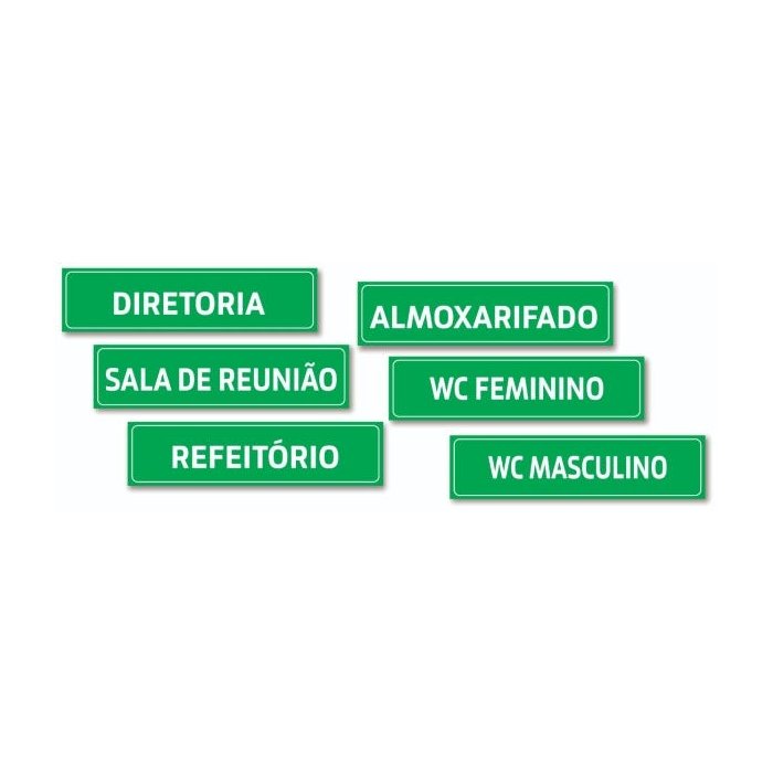 Kit com 6 placas de Sinalização Interna de Empresas: Verde Verde