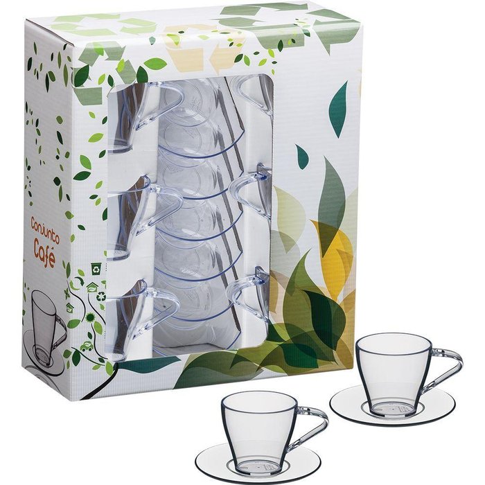 Kit Com 6 Taças Com Pires Caixa Presente Chá Café Caneca Conjunto com 6 xicaras e pires em PS. Perfeito para presentar. Itens inclusos: 6 xícaras em PS (Poliestireno) 6 pires em PS (Poliestireno)