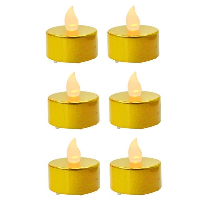 Kit com 6 Velas Velinhas Led Decoração Artificial Festa Casamento Romântica - Dourado