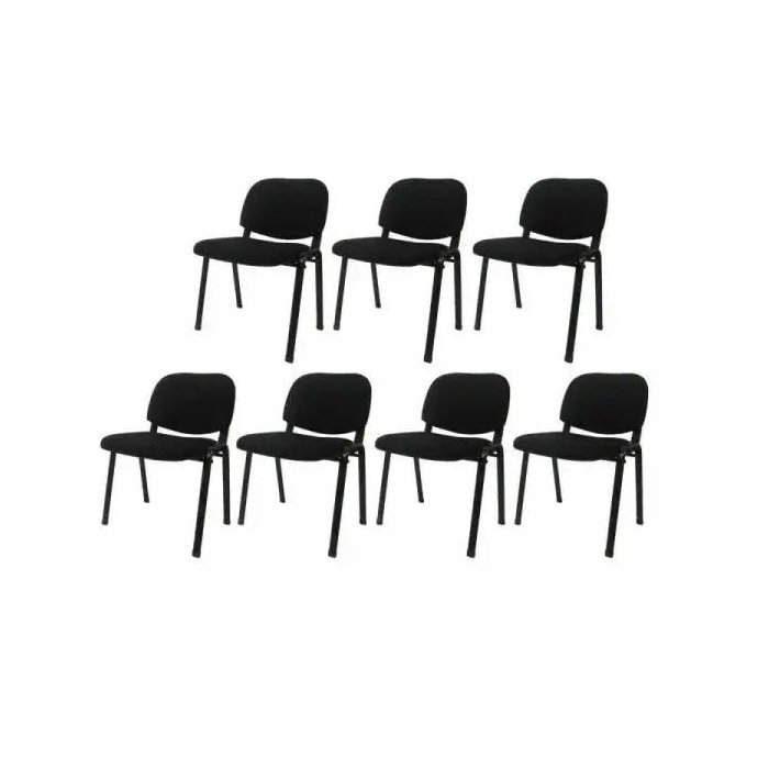 Kit com 7 Cadeiras Secretária em Tecido PEL-304F Pretas Empilháveis Preta