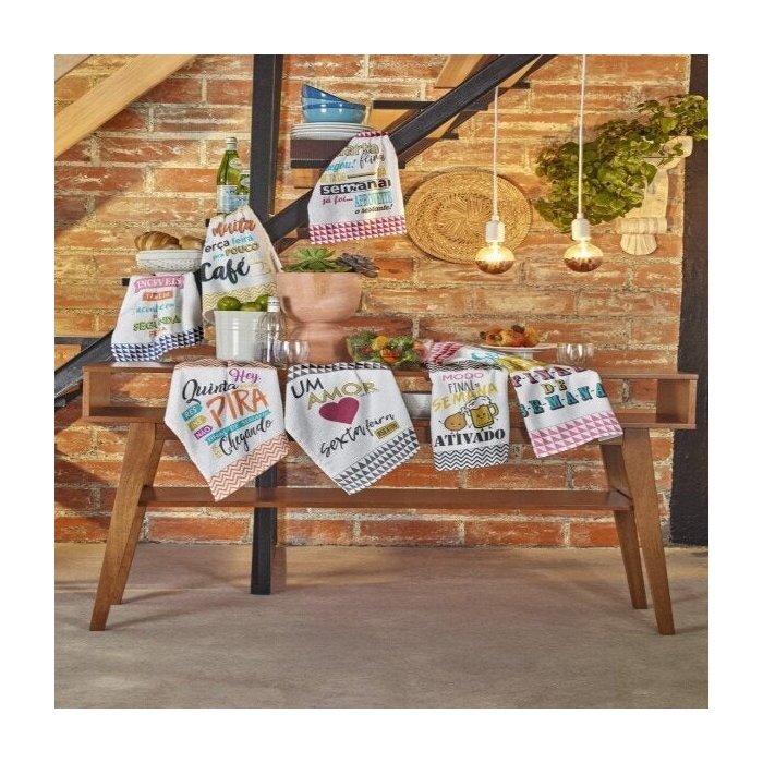 Kit com 7 Panos de Prato Semaninha - Santista Branco