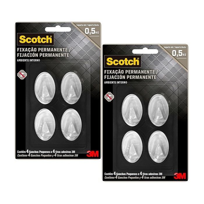 O Gancho 3M Scotch Transparente, indicado para ambientes internos, deve ser aplicado em superfícies lisas. Contém uma cartela com cinco ganchos transparentes pequenos (cada gancho suporta 500 gramas).
