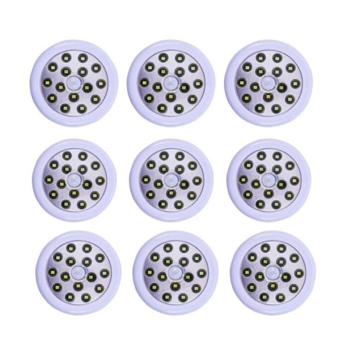Kit Com 9 Luminária 15 Led Closet Imã Sensor Movimento