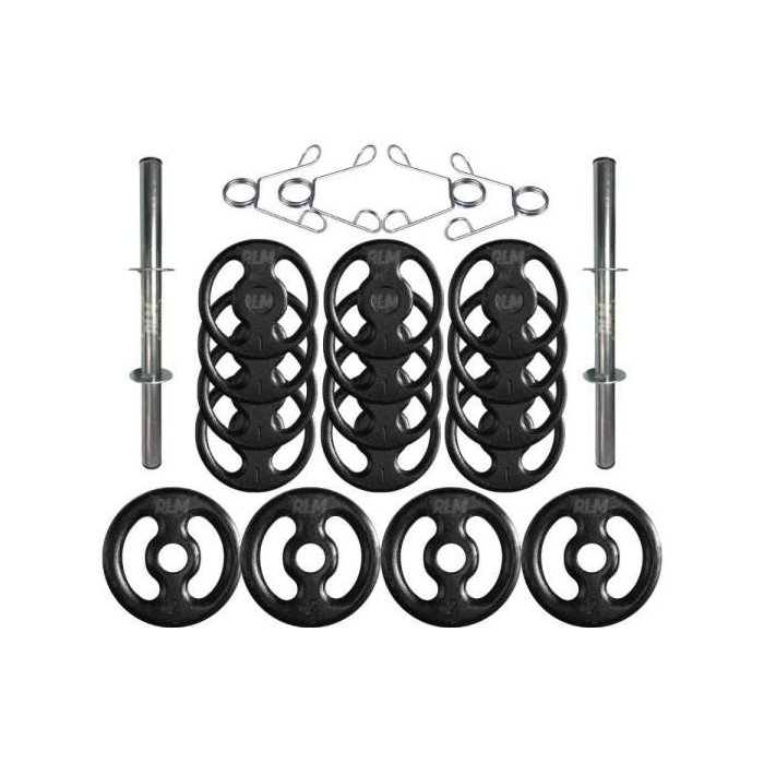 Kit com Barras de Halteres e Anilhas de Ferro - 22 Peças