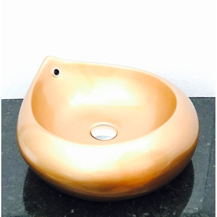 Dimensões: 46,5 x 19,5cm material: cerâmica. kit 2 peças com cuba de louça dourada cobre de sobrepor gota e válvula click cromada para lavatórios