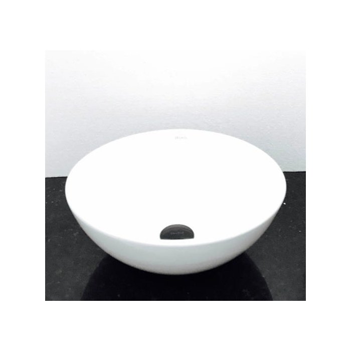 Dimensões: 46,5 x 17cm matérial: louça. kit 3 peças com cuba de louça de sobrepor redonda, válvula click preta para lavatórios e sifão cromado