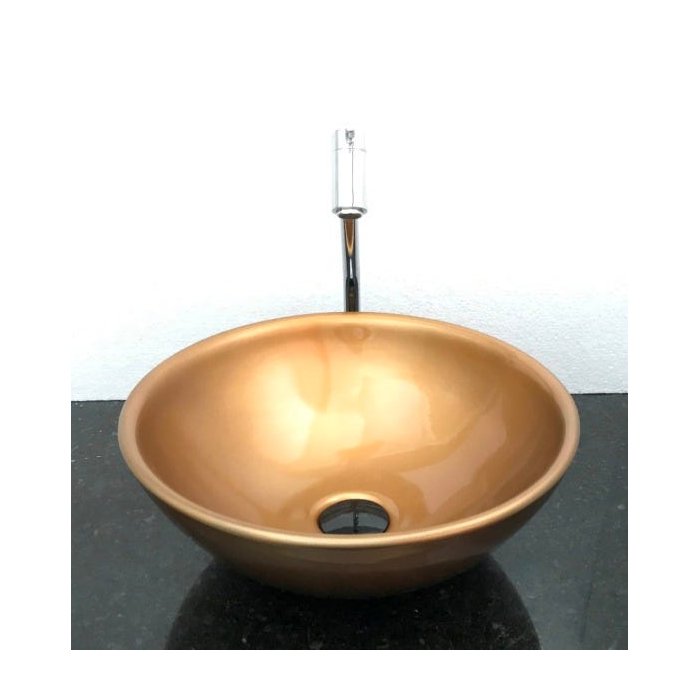 Dimensões: 41 x 16cm material: cerâmica. kit 4 peças com cuba de louça dourada cobre de sobrepor redonda, válvula click preta para lavatórios, torneira cromada 45 e sifão cromado