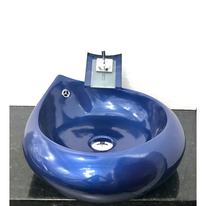 Kit com cuba louça gota azul,válvula,torneira e sifão