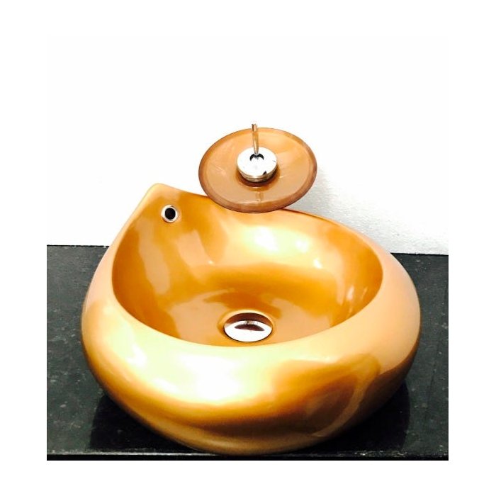 Kit com cuba louça gota dourada cobre,válvula,torneira,sifão