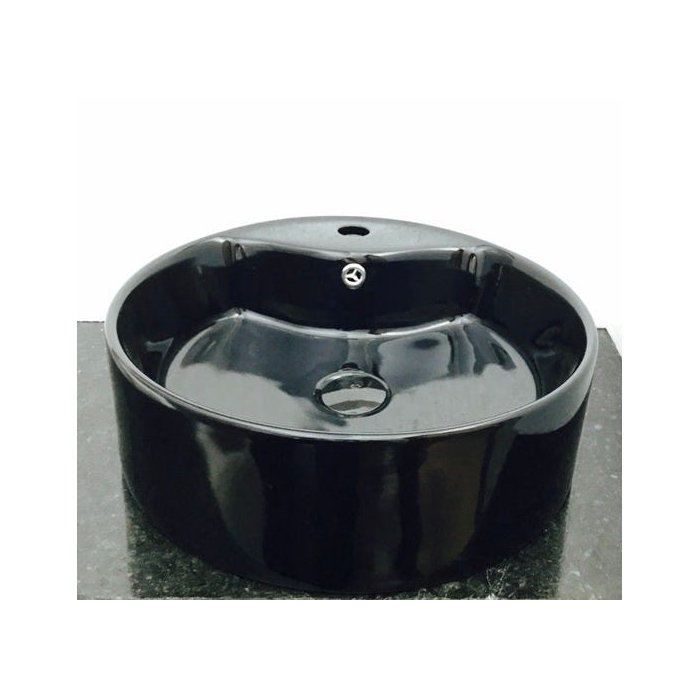 Kit com cuba louça preta redonda apoio,válvula,sifão