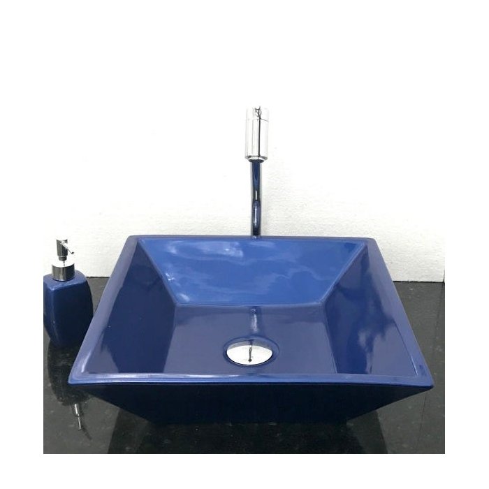 Kit com cuba louça quadrada azul,válvula,torneir,sifão e sab