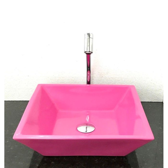 Kit com cuba louça quadrada rosa,válvula,torneira crom,sifão