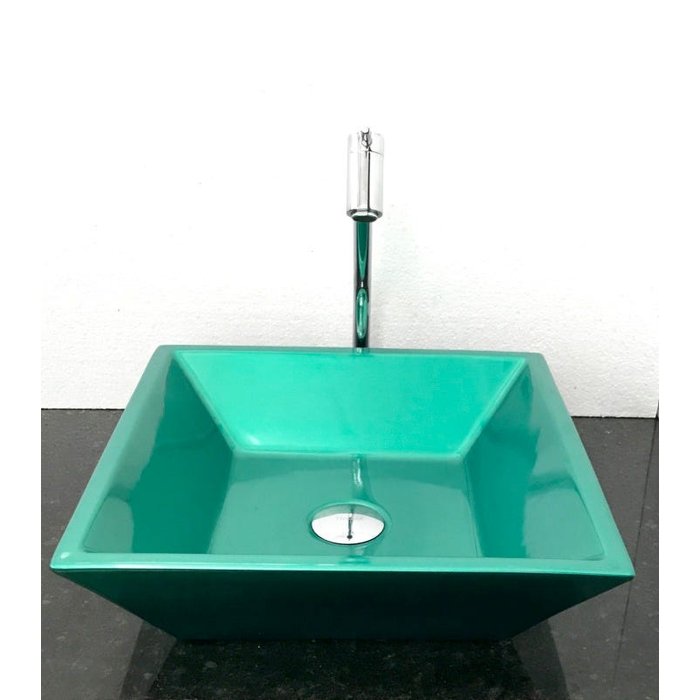 Kit com cuba louça quadrada verde,válvula e torneira cromada