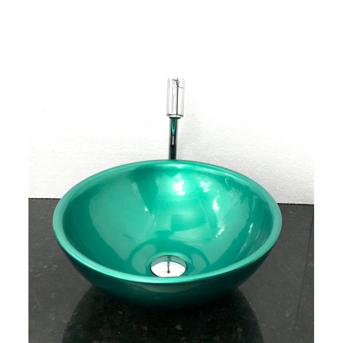 Kit com cuba louça redonda verde,válvu,tornei e sifão cromad