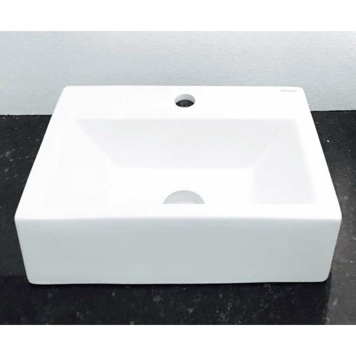 Dimensões: 42,5 x 30 x 13cm material: cerâmica. kit 3 peças com cuba de louça retangular com apoio para torneira, válvula click cromada para lavatórios e sifão cromado