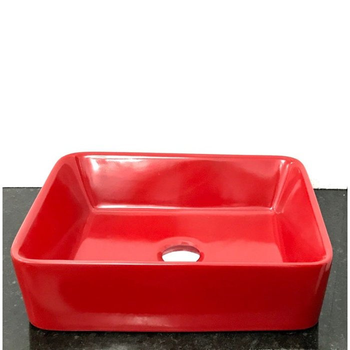 Kit com cuba louça vermelha retangular,válvula e sifão