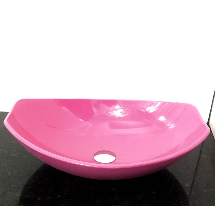 Kit com cuba vidro canoa rosa,válvula e sifão