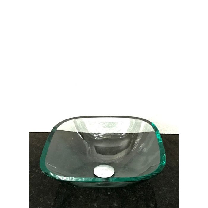Kit com cuba vidro incolor quadrada,válvula click e sifão