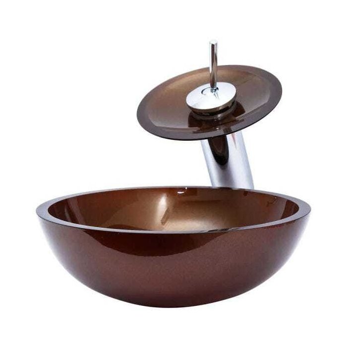 Kit com Cuba Vidro Redonda 35cm + Torneira Cascata + Válvula - Marrom