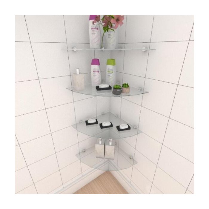 Kit com quatro Prateleira para banheiro de canto 40 cm vidro temperado